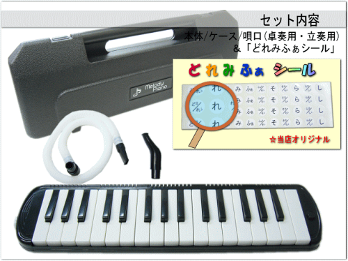 在庫あり【どれみふぁシール&予備の名前シール付き】キョーリツ 鍵盤ハーモニカ P3001 ブラック(黒色)【32鍵盤】KC メロディーピアノ P3001-BK(P3001-32K)【ラッキーシール対応】