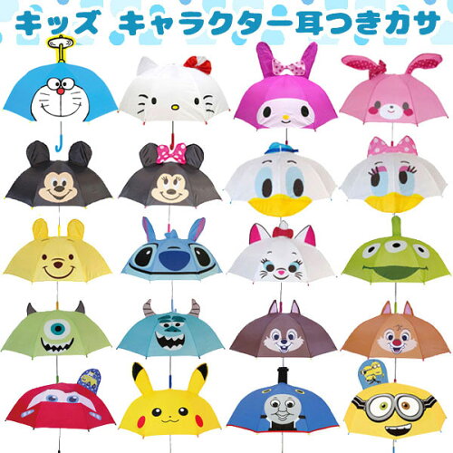 傘 キッズ 耳付き傘 ディズニー ドラえもん 47cm 1200 B38 ミッキー ミニー ぼんぼんりぼん キティ マイメロディ サンリオ マリー トイストーリー モンスターズインク マイク サリー トーマス カーズ ポケモン ミニオンズ キャラクター 子供用 男の子 女の子 こども 幼稚園